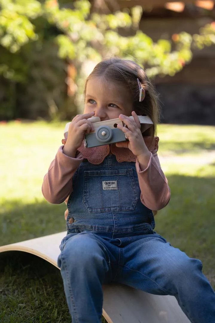 Cámara fotográfica infantil de madera con cinta para colgar en el cuello